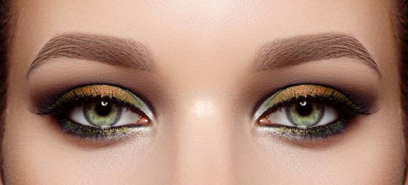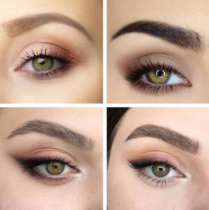 - Выбирая самые выгодные для такой радужки тени разных оттенков зеленого и коричневого, старайтесь, чтобы они полностью не на 100% соответствовали цвету глаз.