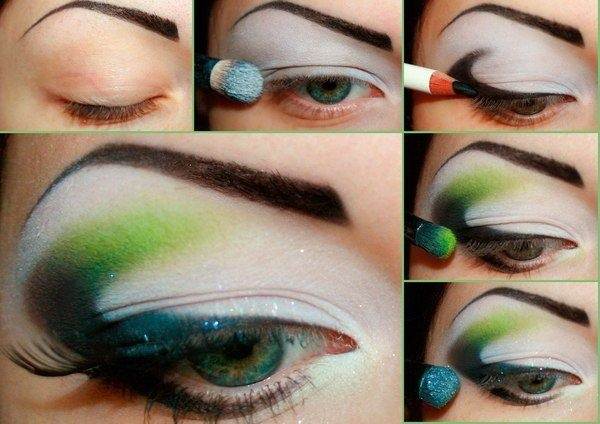 К зеленым глазам отлично будет смотреться яркий макияж с родным для них оттенком – зеленым. Он создается довольно просто.