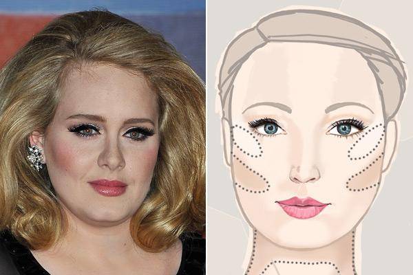 Самая главная задача в создании такого макияжа — постараться избегать нанесения горизонтальных линий, поскольку они будут еще больше «расширять» и без того круглое лицо. можно делать при помощи матовой пудры или же тонального крема на один тон светлее базового цвета.