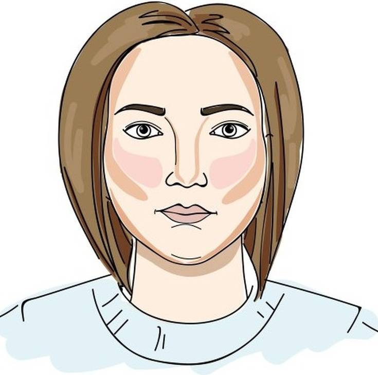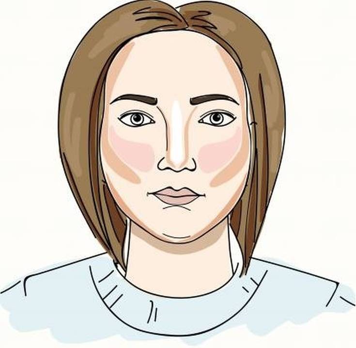 Как правило, лицо кажется круглым за счет больших щек, поэтому в макияже обязательно нужно использовать румяна. Желательно отдать предпочтение румянам телесного или светло-коричневого оттенка, но ни в коем случае нельзя использовать насыщенно-розовые румяна. Наносить такую косметику нужно, начиная с верхней части скул, далее по диагонали, не доходя до внешних уголков губ.