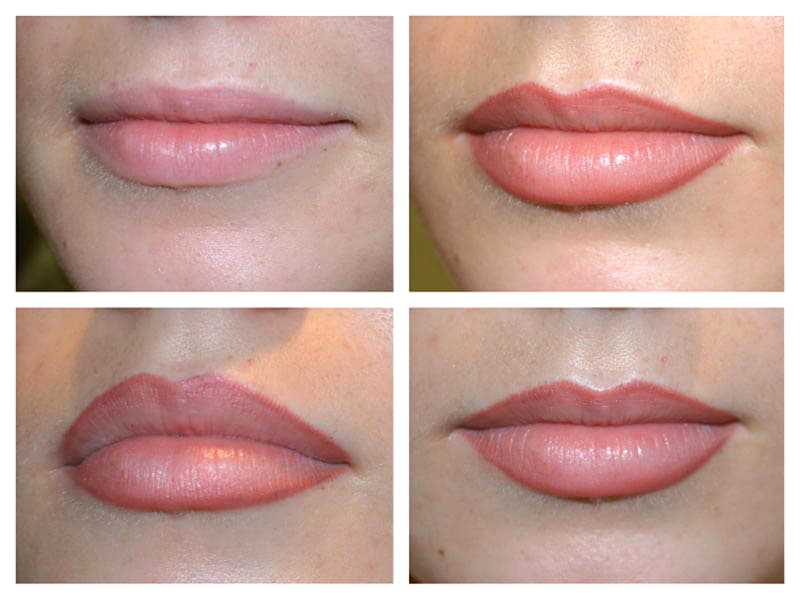 - Придание чувственности и рельефности. Многие видео о том, как делать контурирование лица, содержат в себе уроки выделения губок. Чтобы придать им пухлый и страстный вид, нужно сделать небольшой акцент на верхнем «бантике», используя хайлайтер. Это делается при помощи кисти, спонжа или (за неимением оных) подушечкой пальца. Напоследок можно придать устам цвет, однако их можно оставить и натуральными.