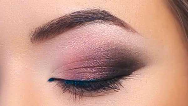- большой плоской кисточкой растушевать верхнее веко, используя фиолетовые, серые, коричневые или бронзовые оттенки;