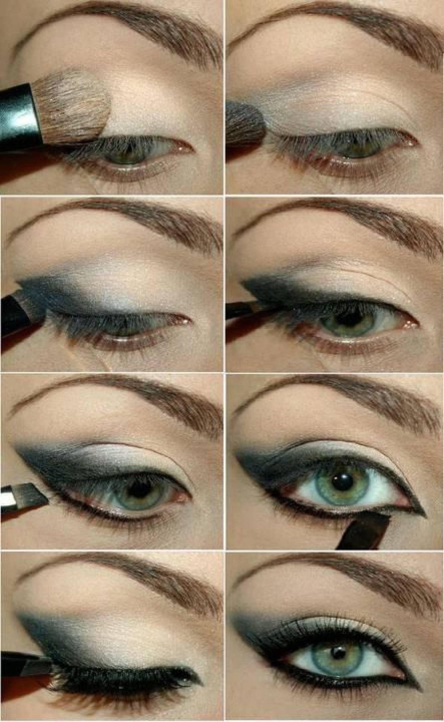 Макияж дымчатый smoky eyes подходит к любому типу лица. Выбор теней и способы нанесения зависят от цвета глаз. Техника макияжа под названием смоки айс включает в себя девять стадий: