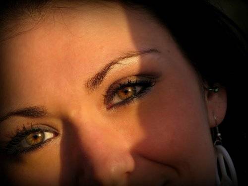 Хоть овал лица и корректируется преимущественно за счет игры оттенков тональных средств, глаза весьма выражено способны «задать» контур, в том числе, сделать его уже.