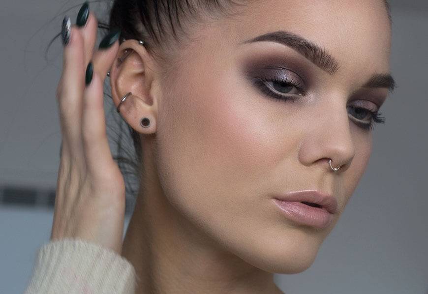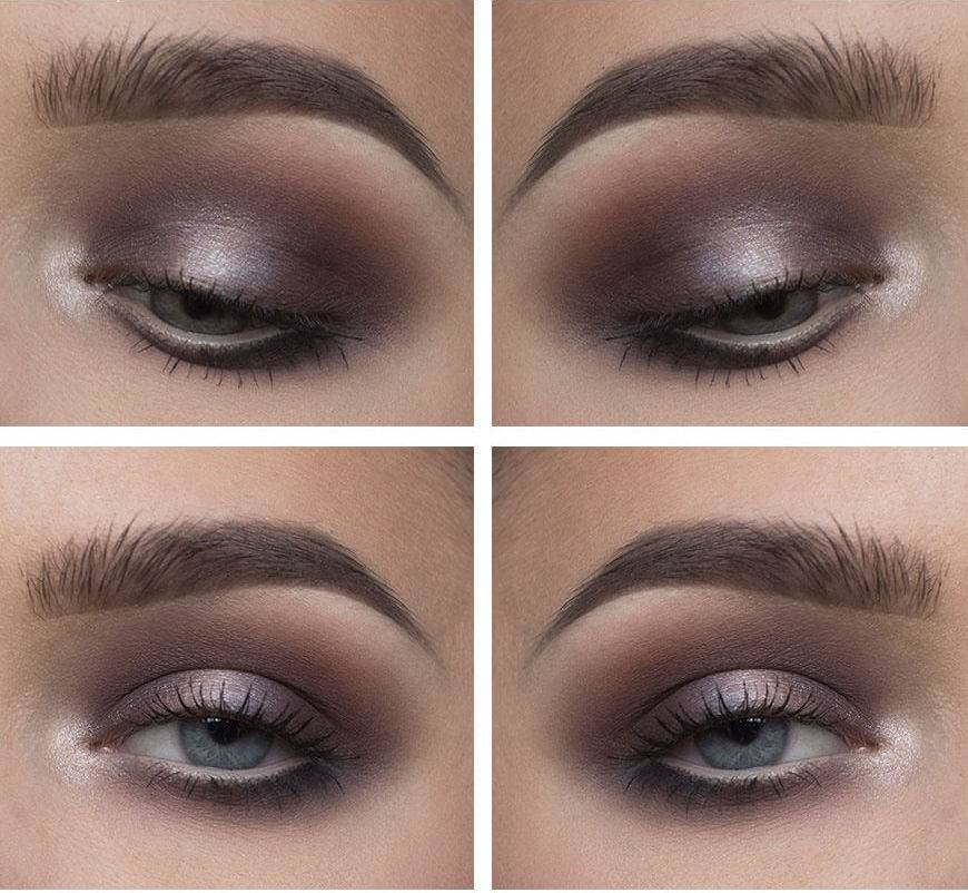 Вечерний макияж требует ярких цветовых акцентов. Так как серый цвет глаз сам по себе выглядит достаточно эффектно на фоне волос любого цвета, лучше подчеркнуть именно его, а для губ выбрать нюдовый или нежно-розовый оттенок. Следуйте нашей фотоинструкции для создания коричневой дымки. Благодаря теплому коричневому оттенку глаза будут казаться скорее голубыми, чем серыми.