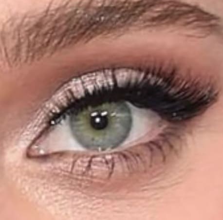- Зелёные глаза с серыми вкраплениями.Для серо-зелёных глаз выбирайте мягкие пастельные тона: оливковый, серебристый или лавандовый.Откажитесь от синего, он подавляет природный цвет.