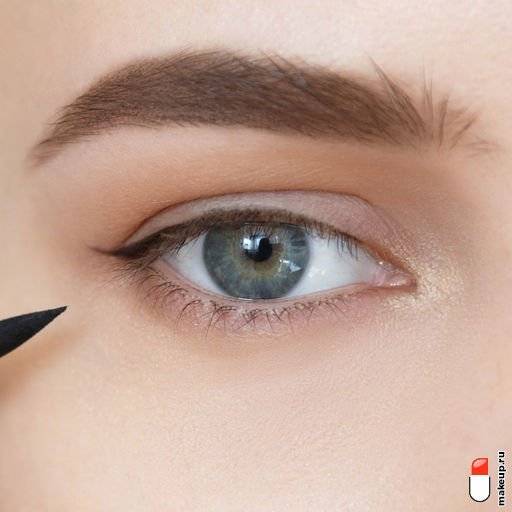 - Расширяющаяся к внешнему уголку линия подводки позволит сделать глаз менее узким;