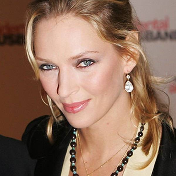 Ума Турман – обладательница лица вытянутый овал выбирает безупречные прически и каплевидные объемные серьги