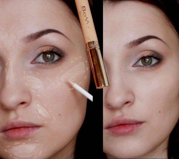 - Первый шаг в идеальном макияже – это маскировка темных кругов, которые не только создают усталый образ, но и визуально уменьшают глаза. Как известно, с такой задачей мастерски справляется грамотно подобранный тон консилера. Напоминаем, что это средство нужно наносить в виде треугольника углом вниз.