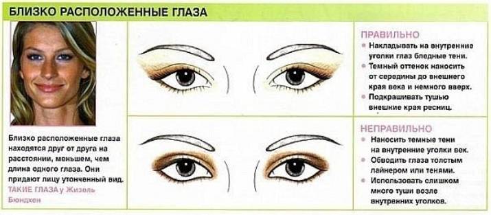 В настоящее время правильное нанесение макияжа может скрыть даже такой маленький недостаток, как близко посаженные глаза, который доставляет многим женщинам неудобство и дискомфорт. Стоит заметить, что многие звезды имеют такую же проблему, но умело ее корректируют и делают изюминкой