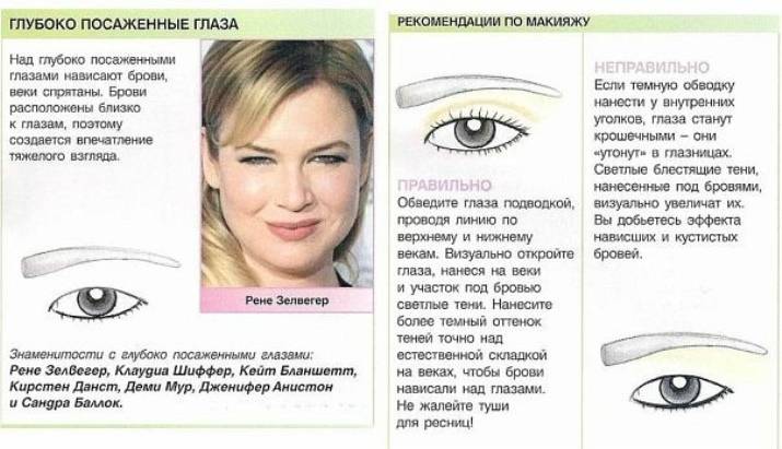 - Для глубоко посаженных глаз подходят густые брови, но не сильно опущенные.