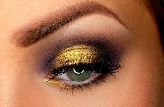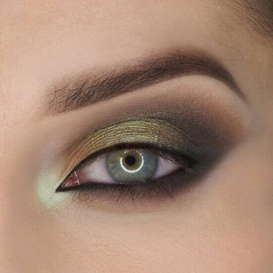 - Каре-зелёные глаза. Для таких глаз подходят палитры золотого, фиолетового и тёмных оттенков (тёмно-коричневый, чёрный и другие).