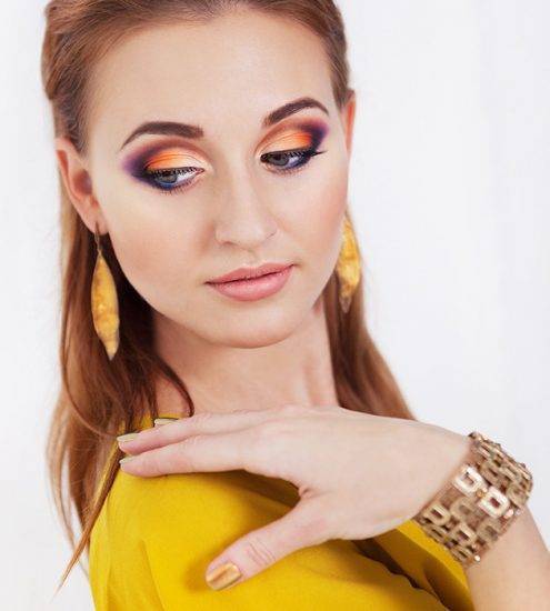 У рыжих девушек в косметичке должны быть тени оранжевой палитры с мерцающими частицами.