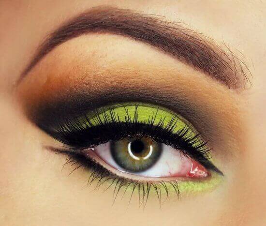 Сочетание темных волос и зелёных глаз очень выгодно для макияжа. Вы можете попробовать буквально все техники нанесения. Если эксперименты вам не чужды, то и цветовая гамма может быть совершенно разной. Лучший вечерний макияж для зелёных глаз (фото поэтапно есть здесь) может быть очень ярким.