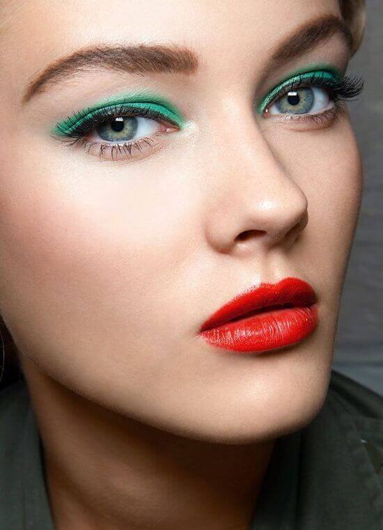 - Говоря о зеленоглазых брюнетках, особенно хочется отметить необходимость красить губы ярким цветом. Это требование в равной степени относится как к вечернему, так и к ежедневному мэйкапу. Используя красную помаду, не стоит забывать простое правило — акцент надо сделать на чем-то одном: либо на глазах, либо на губах.