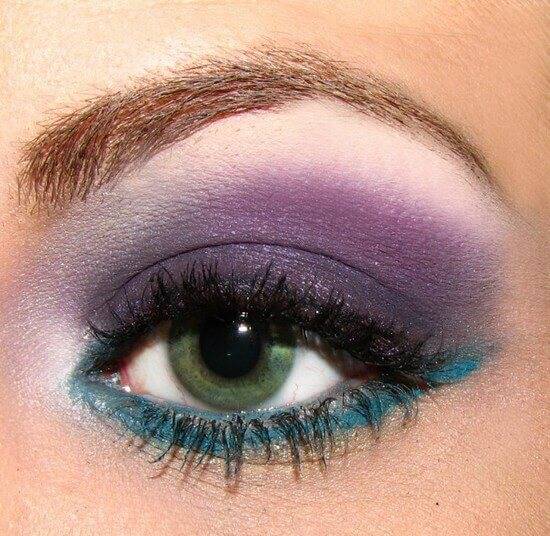 Изумрудный цвет. Самый лучший выход— лиловые тени, создающие контраст с цветом глаз. Основной тон может разбавляться пастельными оттенками. Такой вариант уместен как для дневного, так и для вечернего мейкапа.