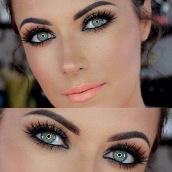 Удачный макияж для зелёных глаз, фото которого вы найдете здесь, должен базироваться на теплых оттенках