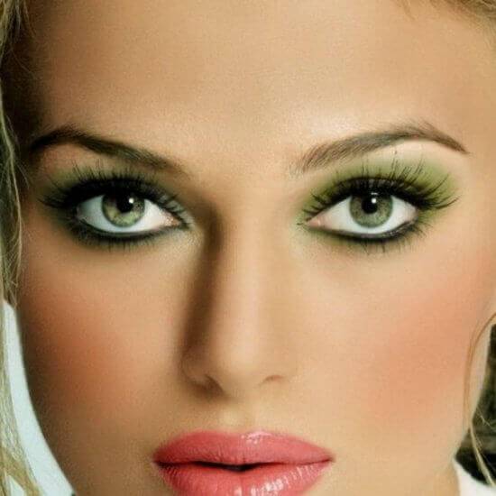 - Макияж для зеленых глаз и русых волос, сделанный с подводкой верхнего века, зрительно увеличит глаза.