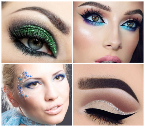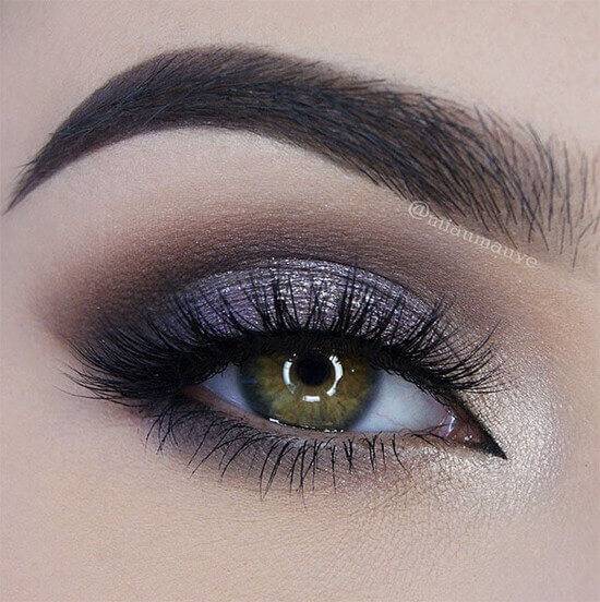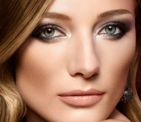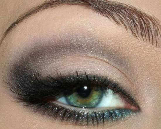 Если у глаз серовато-зеленый оттенок, то лучше применять более светлую палитру. В случае, когда девушка не любит использовать тени, то можно обойтись в этом случае и без них. Достаточно ярко очерченной подводки и обильно наложенной туши. Но этот вариант, скорее всего, подходит для ежедневной носки. А вот для новогоднего макияжа лучше подобрать светлые цвета с металлическим блеском. При таком образе можно сделать акцент на губах. А глаза станут эффектным дополнением, которое не будет «кричать», но в тоже время эффектно выделятся во всем образе.