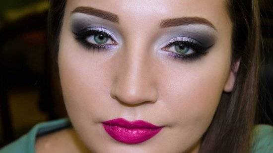 Множество фото вечернего макияжа для зелёных глаз у блондинок позволяют выбрать оттенок теней. Самым эффектным является сочетание серо-коричневого с фиолетовым. Если вы сделаете к таким теням еще и аккуратные стрелки, глаза станут необычайно выразительными.