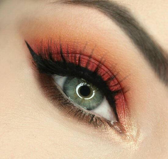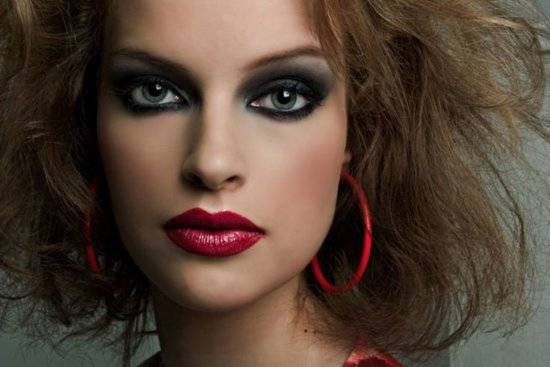 Красные тона, использованные при макияже глаз, также очень эффектны
