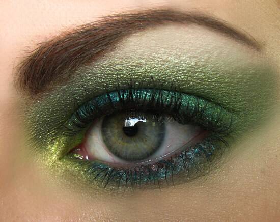 Если вы хотите похвастаться глазами цвета малахита, подчеркните их яркими тенями. Эффект мерцания уместен почти на каждом торжестве