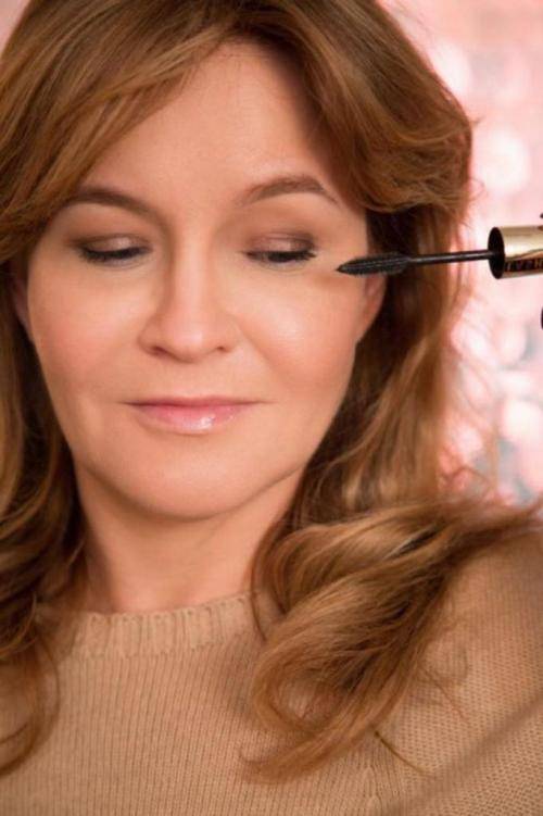 Туши на глазах должно быть минимально. В целом, никому не идёт тушь с комочками, но в зрелом возрасте это смотрится еще более странно. Будет достаточно лишь слегка подкрасить верхний ряд ресниц, чтобы придать выразительности глазам. А нижний ряд нужно прокрасить минимально, причём не нужно прокрашивать ряд полностью. Выделите внешние уголки глаз двумя движениями кисточки, а к серединке нижнего ряда просто слегка прикоснитесь, придав цвета.