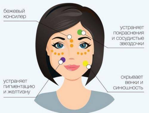 Не стоит пренебрегать использованием консилера. Он скроет темные круги и припухлости век. Его цвет подбирается индивидуально.
