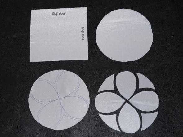 Необходимо заготовить из белой атласной ткани цветочную аппликацию — символ принцессы. Для того, чтобы такая ткань не обсыпалась и ее края были ровными, по бокам следует немного прижечь огнем.