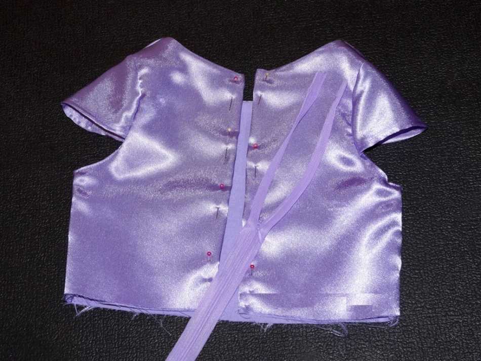 После того, как вы пришьете рукавчики, примерьте основу на вашего ребенка. Так вы сможете определить: подгадали вы с размером или нет. С помощью швейных булавок закрепите молнию. В последствии, если у вас будет желание, вы можете пришить поверх молнии петельки для корсета, в которые проденете тонкую ленточку.