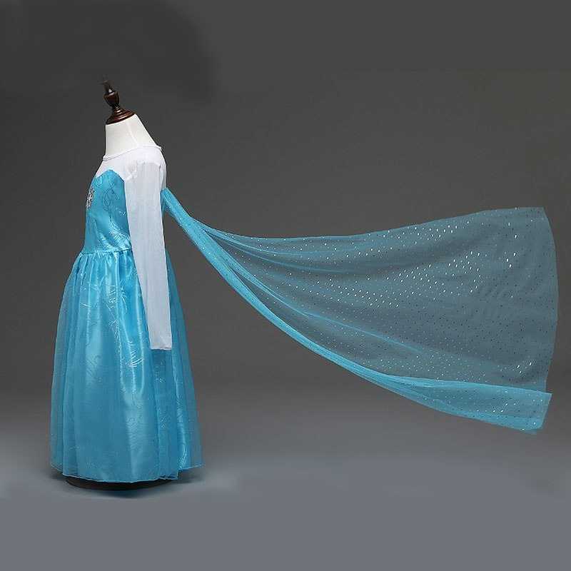 Длинный шлейф — это красиво, но ребенок может в нем запутываться. Учитывайте это, особенно если делаете новогодний костюм Эльзы — как бы не вышло так, что девочка и другие дети будут спотыкаться об накидку во время хороводов вокруг елки.