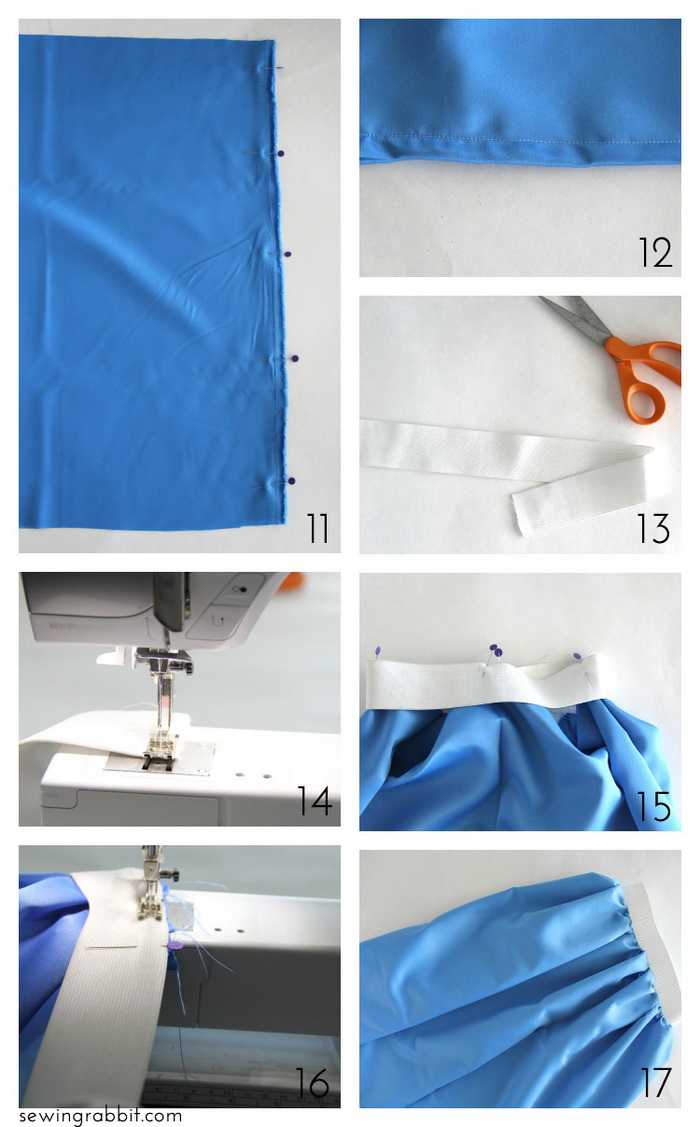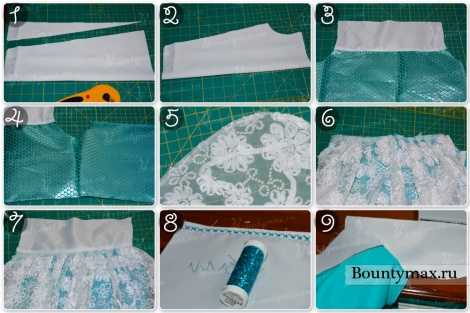 - Отмерьте широкую резинку по обхвату талии ребенка. Пристрочите к ней юбку, создавая складки.