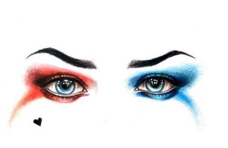 Основной акцент в макияже Харли на сочетании синего и красного цвета.