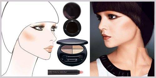 На очищенное лицо наносится тональная основа, можно использовать витаминизированную. Ровным слоем наносится тональный крем и пудра. Брови немного подкрашиваем тенями подходящего цвета – черного или коричневого. Идеально, если вы имеете форму бровей вразлёт.