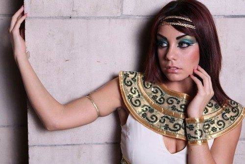 Макияж в стиле Клеопатры- это чувственные и выразительные глаза, которые имеют длинные стрелки, нарисованные темной подводкой. На веко наносились тени из яркой контрастной палитры, тем самым передавая колорит эпохи правления царицы Египта