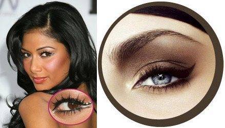 Сначала проведем линию самыми тёмными тенями (цвет остаётся на ваше усмотрение: от насыщенно-синего и каштанового до угольно-чёрного). Тщательно прокрашиваем пространство между ресничек, чтобы придать ему более аккуратный вид и яркость. Старайтесь провести максимально повторяющую изгиб века полосу, как можно плотнее к ресницам. У внешнего уголка глаза линия должна уйти слегка вверх и стать немного шире. Затем можно немного её растушевать, но делайте это аккуратно и очень легко. Более тщательная растушёвка – фишка «смоки айс».