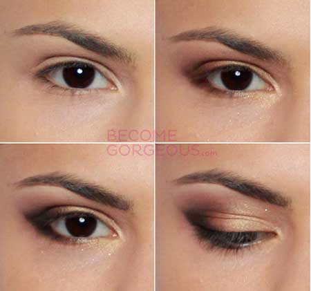 - Нанесите на подвижное веко тени золотистого цвета.
