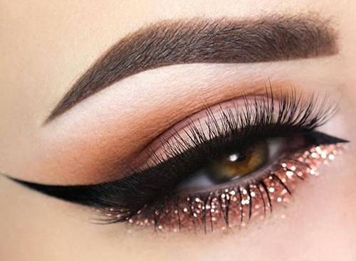 - Прокрашиваем ресницы. Можно приклеить накладные. После на внутренний угол глаза добавляем блестящую подводку.