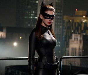 3. Образ кошки в стиле Энн Хэтэуэй из «Черный рыцарь: Возрождение». Для него вам также понадобится черный облегающий комбинезон (или ласины и водолазка), ботинки на каблуке, перчатки, черный кожаный пояс и маскарадная маска.
