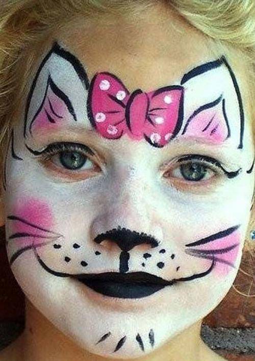 Многие девочки любят мультик Хелло Китти. И даже тем, кто его ни разу не смотрел, знакома милая белая кошечка – главный герой. Кто сказал, что макияж должен быть реалистичным? Девочка будет рада, если у нее на лице нарисуют мордочку кошки Кити.