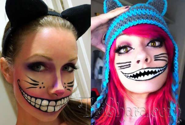 Добавим, что одним из популярных вариантов образа на Хэллоуин является герой книги Кэррола — Чеширский кот. Макияж этого образа отличается своеобразная «улыбка».