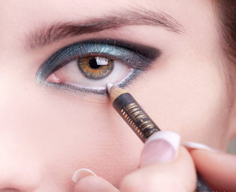 Ресничный контур прорисуйте белым карандашом, это еще больше распахнет взгляд