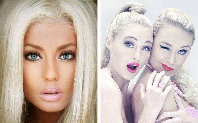 Девушки со светлой кожей, глазами и волосами, выполняя мейкап как у куклы, отдают предпочтение розовому и бледно-голубому оттенку. Удачные примеры мейкапа Барби для блондинок и шатенок продемонстрированы на фото.