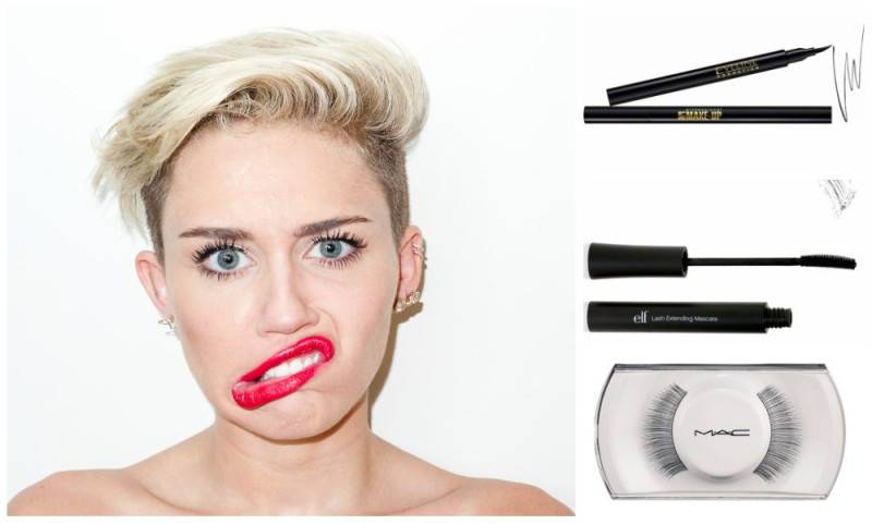 - У Miley Cyrus шикарные ресницы, причем певица не наращивает их. В мейк-апе мы будем использовать черную тушь для удлинения ресниц. Если ваши реснички недостаточно пушистые, можно немножко сжульничать и воспользоваться накладными лентами или пучками. Аккуратно приклеиваем ленты или пучки, подбирая размер так, чтобы к уголкам глаз длина пучков уменьшалась, тогда результат будет выглядеть натурально.