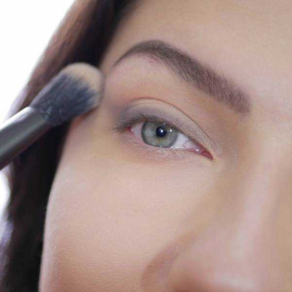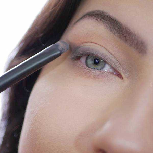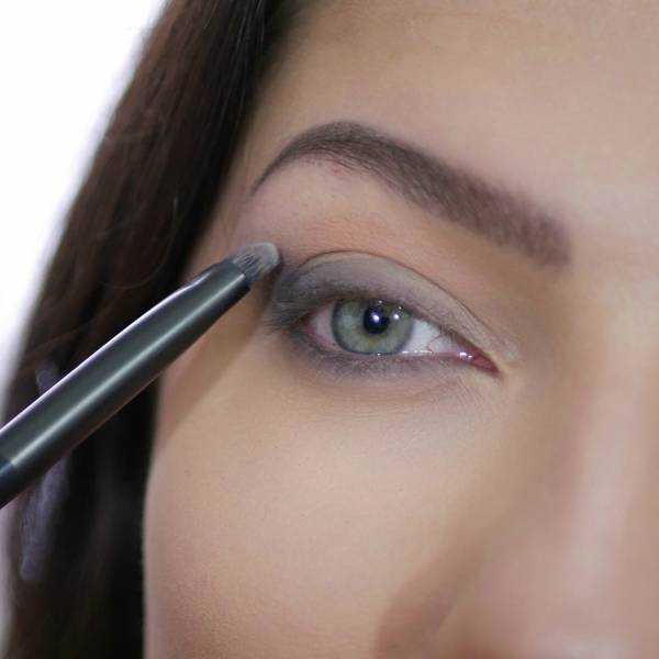 Вдоль линии роста ресниц нанесите серые тени и растушуйте.
