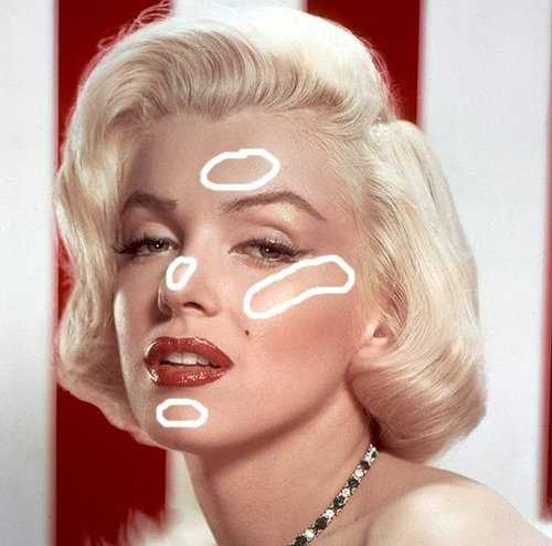 Хотя Мэрилин Монро и сделала вынужденную ринопластику, ей все равно казалось, что нос слишком велик. Для коррекции этого недостатка визажист просто касался розовыми румянами кончика носа.