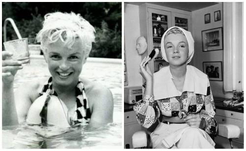 - Одна из особенностей образа кино дивы- ее белые локоны. Натуральный цвет волос красавицы- шоколадный, но с ним она хоть и была привлекательной, не выделялась из толпы других девушек. Говорят, что именно смена цвета волос стала ключевым моментом в карьере актрисы. Тогда для обесцвечивания шевелюры пользовались перекисью, сегодня красавицам доступны более щадящие средства.