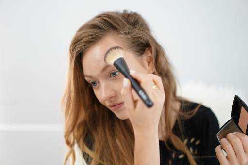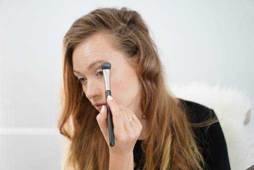 С помощью румян цвета увядшей розы сделайте легкую коррекцию лица, добавляя этот оттенок и по бокам лба, а также на складку века.