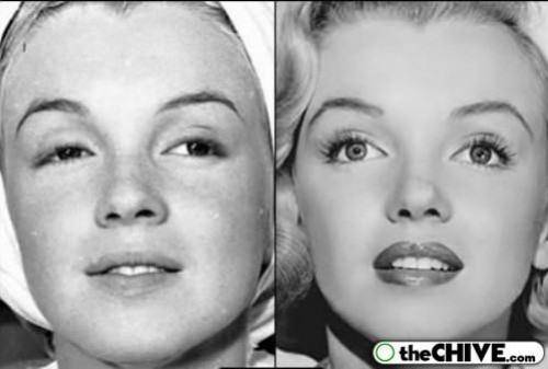 Если присмотреться к фото актрисы, то кажется, будто природа наделила Мерилин невиданной красотой, ведь макияжа на лице совсем немного. Но как удивится читатель, если узнает, что от природы у актрисы была весьма чувствительная и сухая кожа, маленькие глаза с подпухшими веками и тонкие губы. Глядя на фото Мерлин Монро без макияжа понятно, что никакими особыми природными данными девушка не обладала