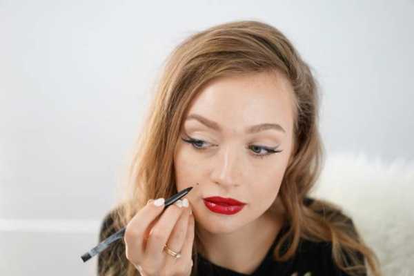 - Помимо разных оттенков помад, в своем макияже Мэрилин Монро использовала и несколько оттенков подводки и карандашей для глаз. Верхнее веко подводите черным, а на слизистой используйте темно-коричневый карандаш. Белый карандаш или хайлайтер, к слову, тоже пригодится, чтобы выделить внутренние уголки глаз и линию роста нижних ресниц. На финальном этапе поставьте в уголке глаза небольшую точку красным карандашом, чтобы эффект получился еще более заметным.
